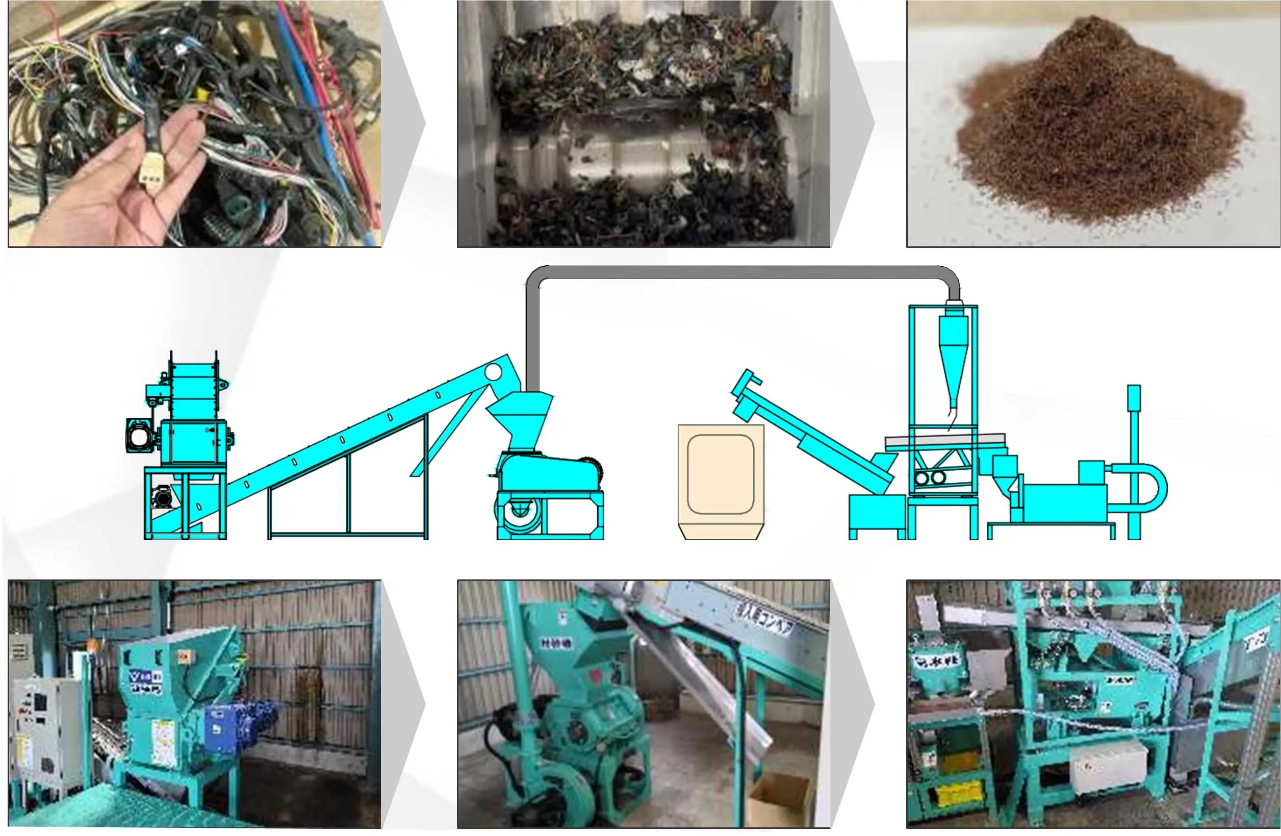 The Wet Type Copper Nugget Plant is an advanced recycling system designed to recover pure copper from waste wire harnesses and electrical cables through an eco-friendly wet separation method. This technology ensures high recovery efficiency, minimal material loss, and excellent product purity.